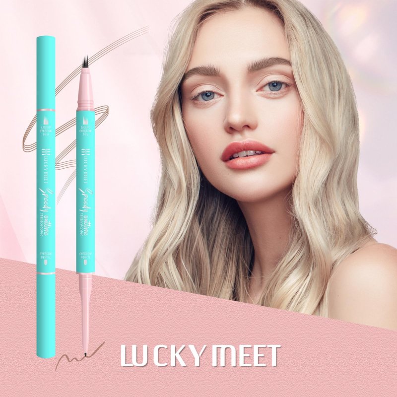 LUCKY MEET 2-In-1 Eyebrow Pencil, Micro-Fork Tips Liquid Eyebrow pen & Ultra-fine Brow Pencil, Dual-ended, Quick and Precise Brow Definition Brow Pen, Eye Makeup Gifts for Women, Chestnut