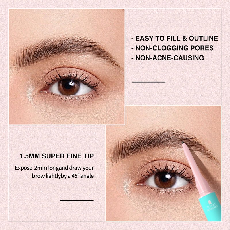 - DUAL-ENDED DESIGN: Our eyebrow pencil features a dual-ended design for versatile application. One end boasts an ultra-fine wax-based tip for precise outlining and detailed filling, while the other end features a micro-fork liquid tip for effortlessly filling in sparse areas and achieving natural, wild, or defined brow shapes. Even beginners can master the art of eyebrow shaping with ease.