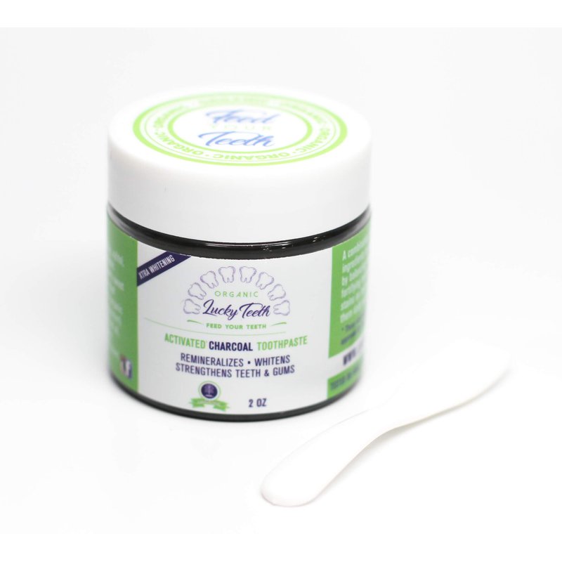 Lucky Teeth Organic Toothpaste- Mixed -Charcoal + Regular (White) -All Natural, Remineralizes and Fortifies Teeth and Gums. (2 Bottles) (2 OZ PET Plastic)