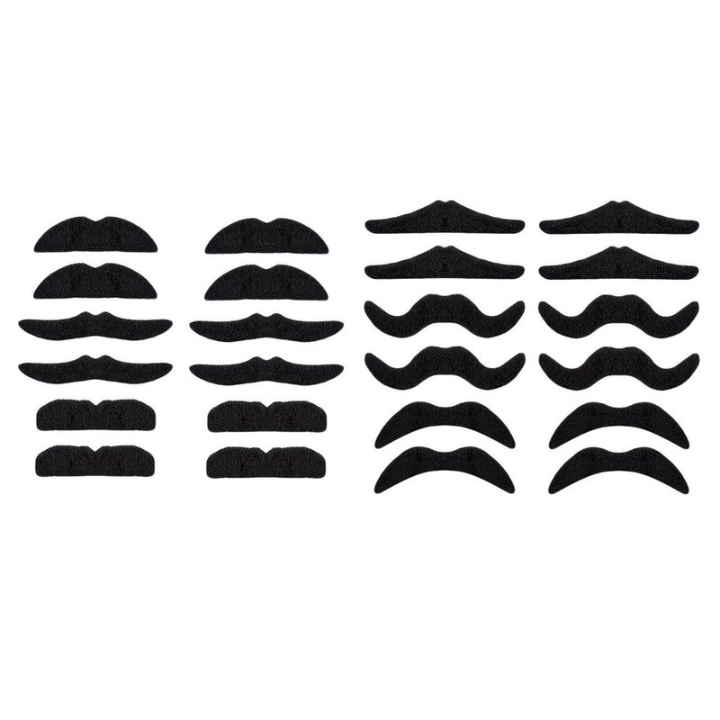 - √ 6 Different Designs, 2 Sets of 12 Fake Mustaches
