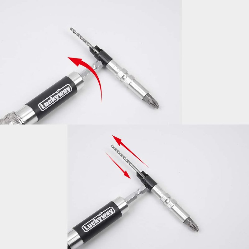 Luckyway 4-Piece Quick Change Drill and Drive Set,Countersink Drill Bit Set,Including 1pc #6, 1pc #8, 1pc #10 Wood Countersink Drill Bit and 1pc Quick Change Drill Flip Drive Unit