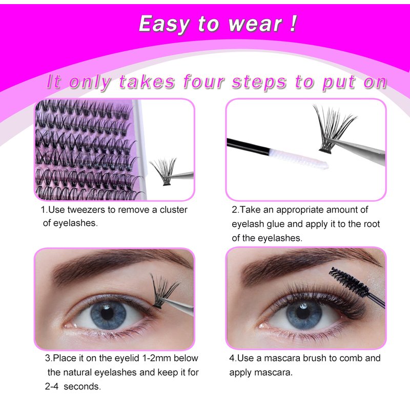 - Excellent quality: Made of synthetic fibers, it creates a naturally fluffy lash clusters effect, soft, lightweight, and comfortable to wear without feeling sticky or heavy.