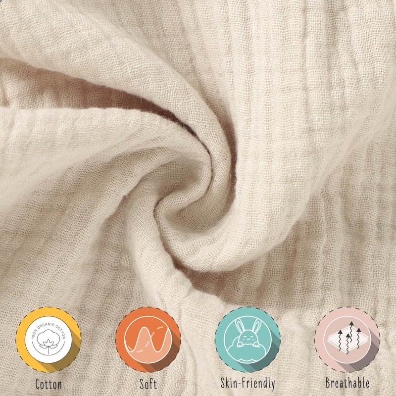 - 100% Organic Cotton: Unisex newborn essentials crafted from soft, breathable, and gentle organic cotton muslin, perfect for delicate baby skin and safe organic baby items