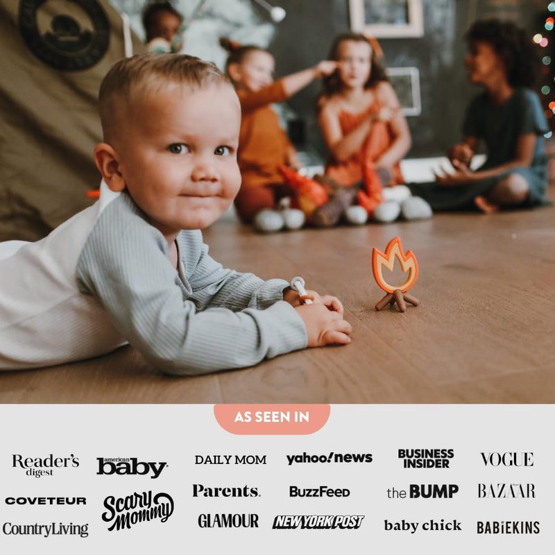 - Easy to grab & hold sensory baby toys 6-12 months: Get 2 teether infant toys in Lucy Darling's camper teether set. Each pack includes 1 campfire and 1 camper teether toddler toys perfectly made for little hands to play! These fun-sized teething toys 6-12 months are lightweight & come in captivating shapes to light up your baby's curiosity, stimulate their senses and encourage them to explore! Have your kids try it to keep them entertained while it develops their fine motor skills.