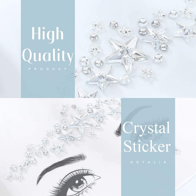 - Rhinestones face sticker is made of 100% safe and non-toxic acrylic jewels. It is of high quality and self-adhesive, do not require glue. It is durable and can be used repeatedly.