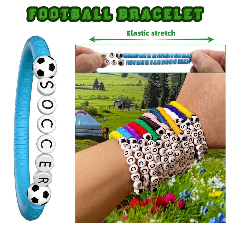 - 12 pieces of mulit-color soccer themed bracelets: come in a universal size of 7 inches; designed with elastic bands, these sports bracelets prove to be an ideal accessory for soccer activities, events or parties,The quantity makes it particularly convenient for sharing the soccer themed joy with friends