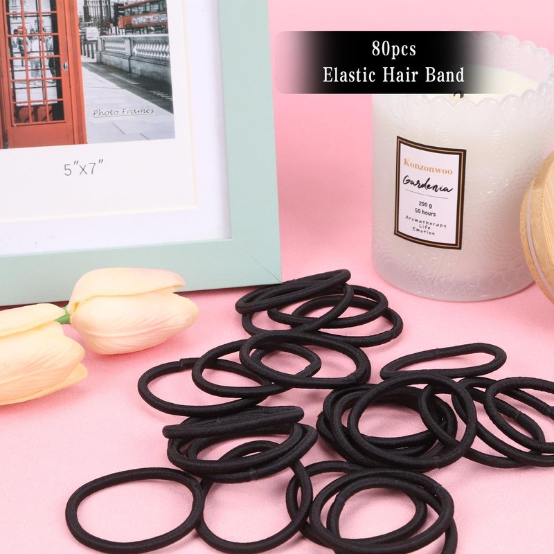 The hair ties contain 80pcs high-quality elastic bands, enough for your daily use or as a gift for friends, family, and more. The black elastic bands are versatile in colour and can be used multiple times, suitable for curly, straight, fine, thin hair and other hairstyles. You can put the hair ties in the bathroom, washroom, dressing table, car, gym bag and any other place where you may need to use it. When you wash and eat breakfast at home with the headband easy to tie, hair is no longer loose, the perfect solution to your hair troubles; when styling, it can be used to tie ponytails, braids, top knot, bridal heads, creative braids, etc. The hair tie is non-metallic and will not entangle or damage hair. The ponytail holder is elastic and holds your hair firmly, giving you a comfortable experience; when you go out, the classic black colour can match all your clothes, and the ponytail holder is convenient and lightweight, so you can wear it on your wrist when you don't need to use it; in the scenarios of running, yoga, biking, gym or dance studio, if you don't want to have your hair sticking to your sweaty body and affecting the effect of your workout, the ponytail holder is the best choice.