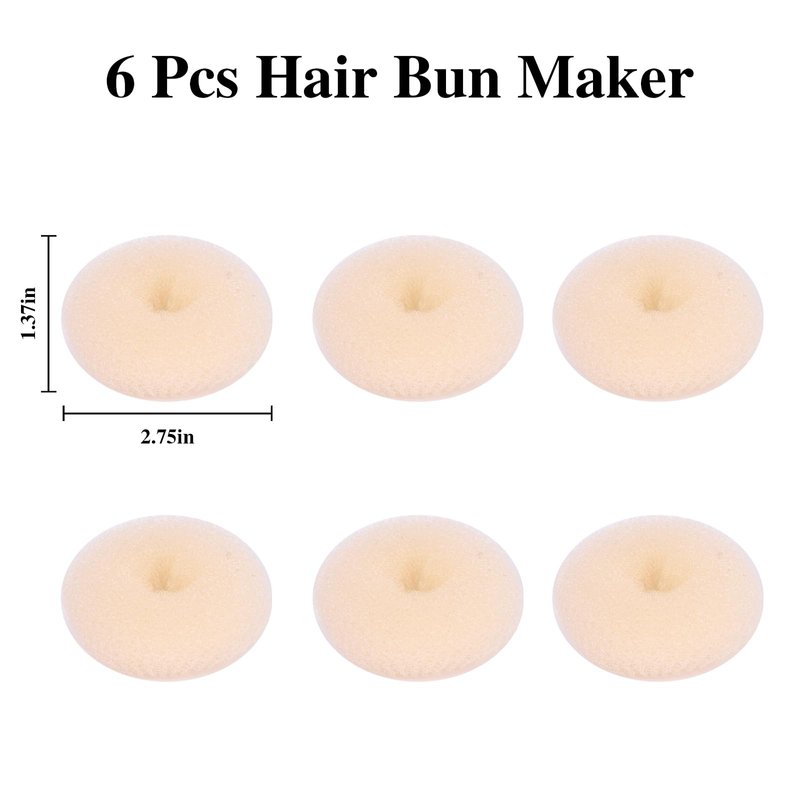 - Hair Bun Shaper: It contains 6pcs, measuring 2.75"*1.37". The hair donut fit can make the bun bigger, thus increasing the volume of hair, and also make your hairstyle more beautiful.