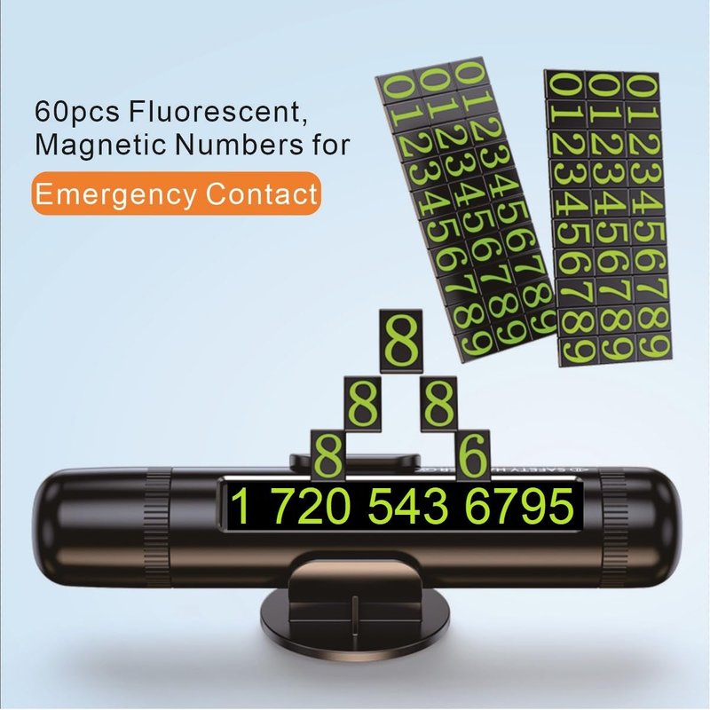 - 👍【Phone Number Plate】------There are 60 green, fluor escent, and magnetic numbers. Select required digital, just put them on the inside rectangle mirror, combine into telephone number plate; rotate the right cover clockwise, and the arrow will point from ON to OFF, then phone number will be hidden