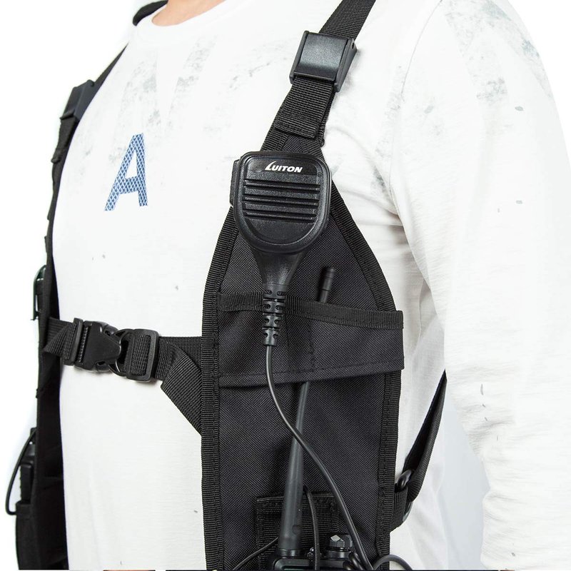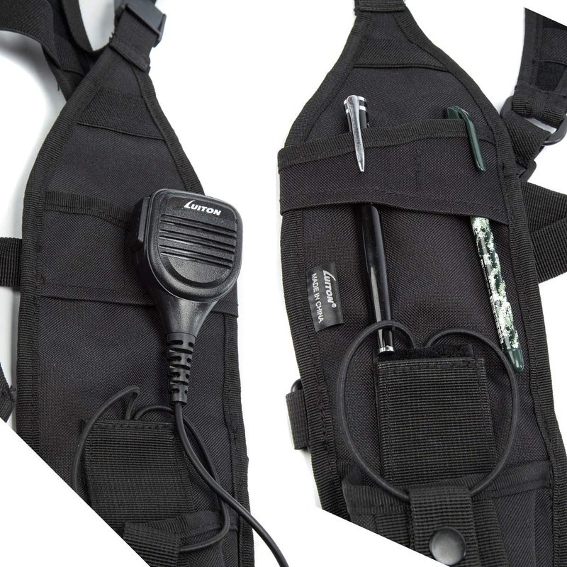LUITON Radio Shoulder Harness Holster Chest Holder Universal Vest Rig for Police Firefighter Two Way Radio Search Rescue Essentials with American Flag Patch