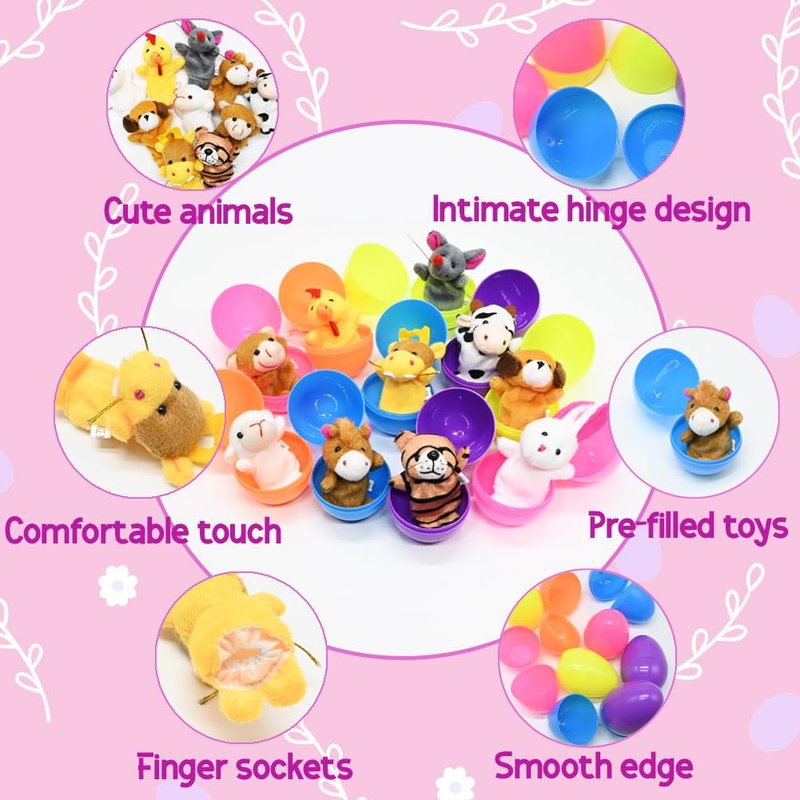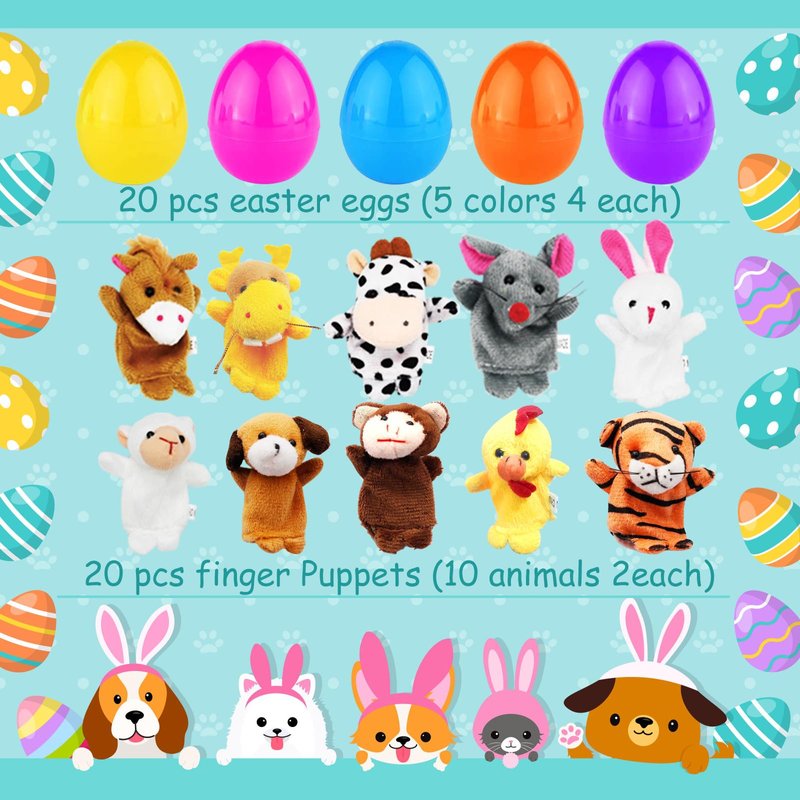 LUKBERA 20 Pcs Easter Eggs Filled with Finger Puppets, Plastic Egg with Cartoon Animal Puppets for Kids Easter Egg Hunt Easter Basket Stuffers Fillers Easter Party Favor Classroom Prize