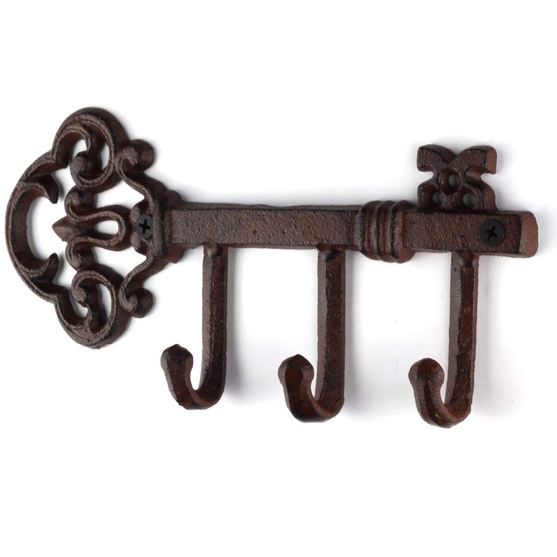 - Wall mount antique skeleton key hanger with 3 hooks for entryway