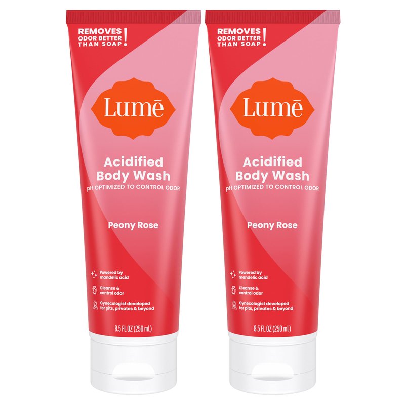 Lume Acidified Body Wash - 24 Hour Odor Control - Removes Odor Better than Soap - Moisturizing Formula - SLS Free, Paraben Free - Safe For Sensitive Skin - 8.5 ounce (Pack of 2) - Peony Rose
