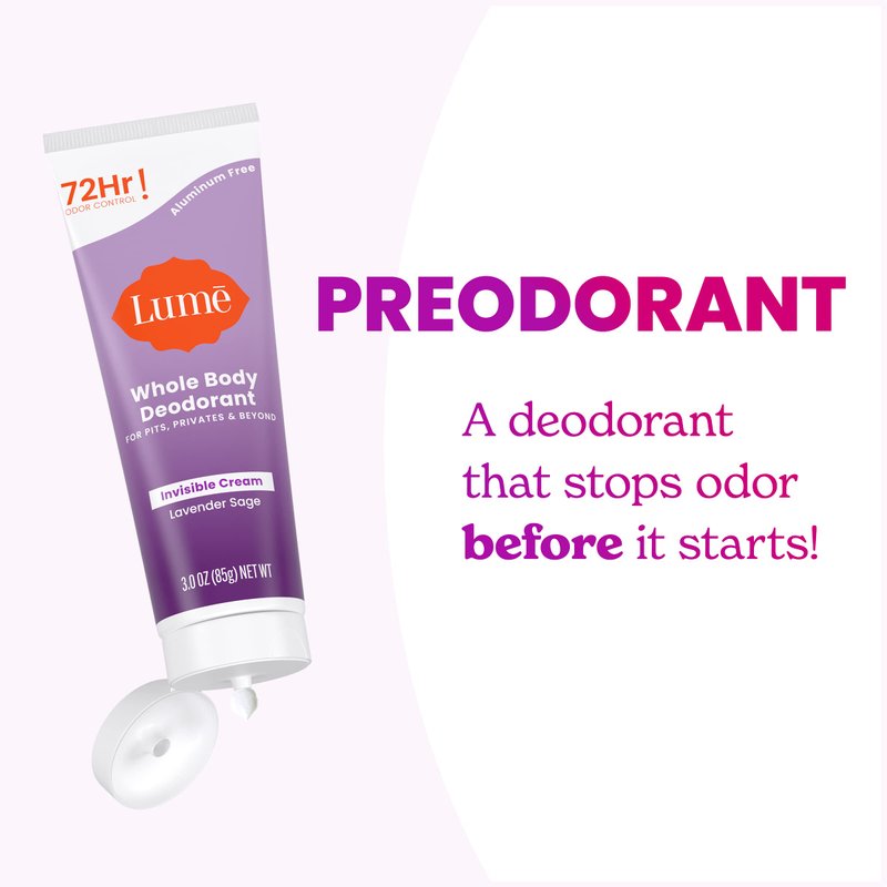 Lume Whole Body Deodorant - Invisible Cream Tube - 72 Hour Odor Control - Aluminum Free, Baking Soda Free, Skin Safe - 3.0 ounce (Pack of 2) (Lavender Sage)
