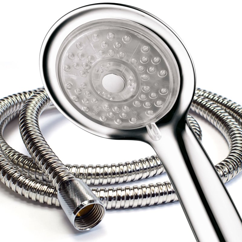 Luminex by PowerSpa 7-Color 4-Setting LED Handheld Shower Head with Air Jet LED Turbo Pressure-Boost Nozzle Technology. 7 vibrant LED colors change automatically every few seconds