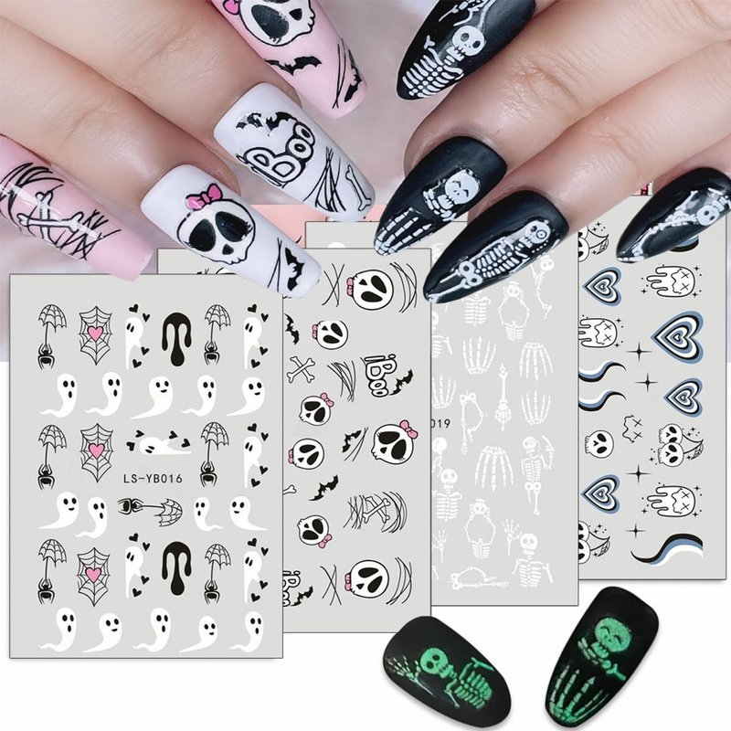• Easy to Use: This spooky skeleton nail decals for nail art is self-adhesive. just use tweezers to tear off the ghost nail stickers, and then stick the 3d skull nail stickers on the nail.You can also use nail gel to cover to make the stickers last longer