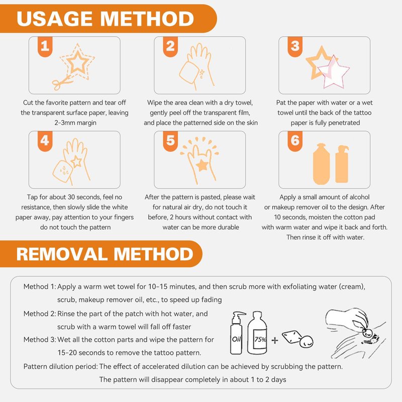- 【Easy to Apply and Remove, Waterproof and Long-Lasting】 Our Halloween stickers are incredibly easy to use and remove. Simply choose your favorite design, place it face down on the skin, and wet it with water. Wait for 10 seconds, then gently remove the white surface to reveal the tattoo. These luminous temporary tattoos are designed to last, being waterproof and sweat-resistant, ensuring they stay vibrant for 3-5 days. When it’s time to clean up, a quick wipe with alcohol, body oil, or olive oil easily removes the tattoos.