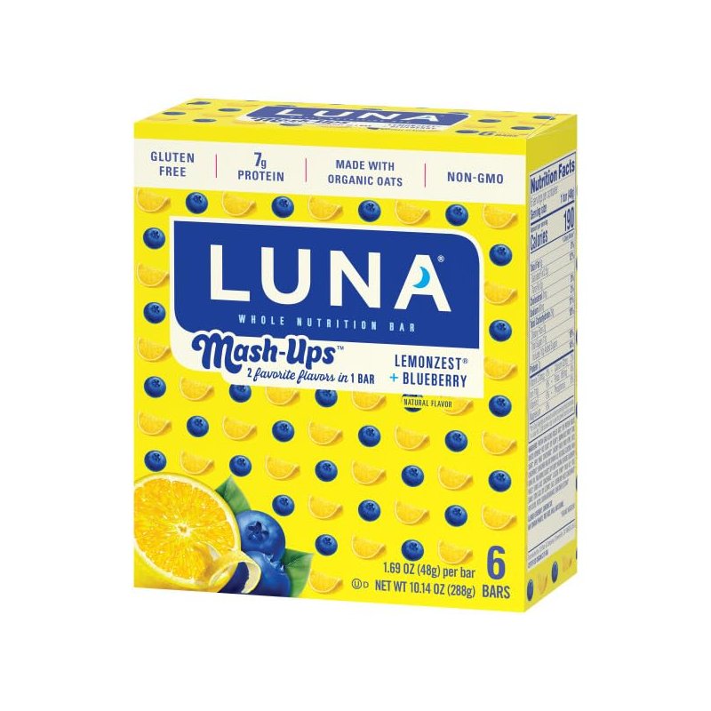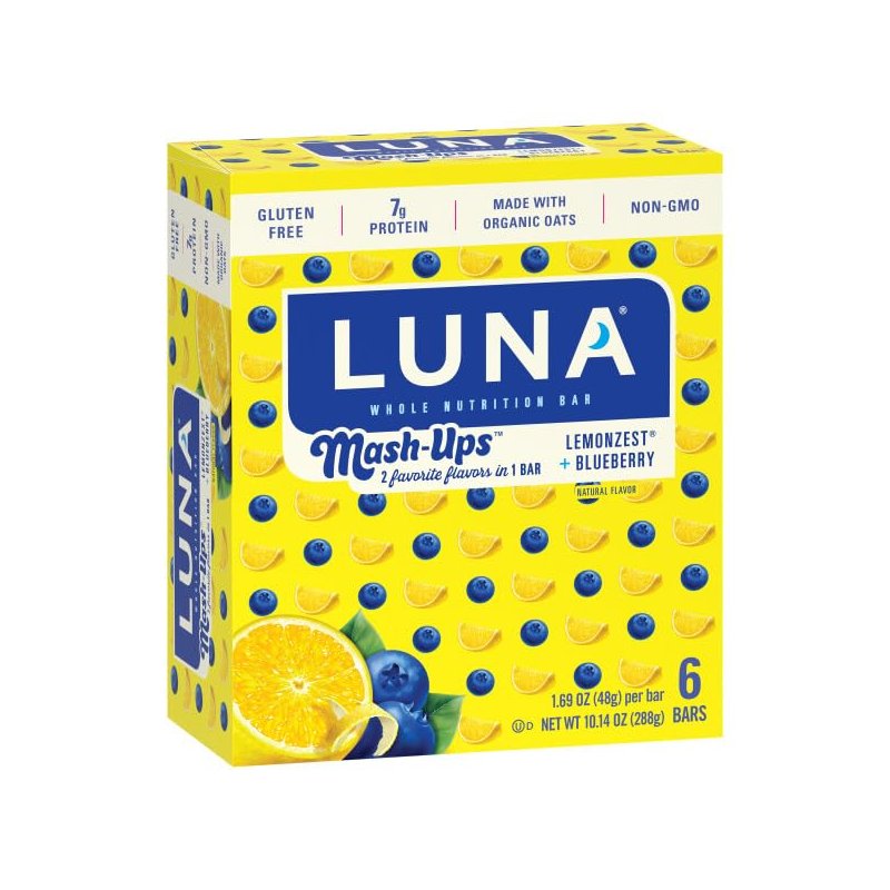 LUNA Mash-Ups - LemonZest + Blueberry Flavor - Gluten-Free - Non-GMO - 7-9g Protein - Made with Organic Oats - Low Glycemic - Whole Nutrition Snack Bars - 1.69 oz. (6 Count)