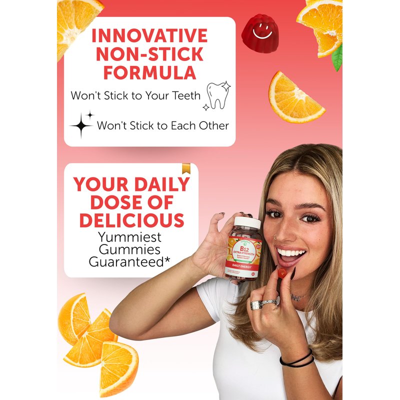 - Delicious and Convenient: Enjoy the delicious citrus flavor of our chewable vitamin B12. These energy gummies are easy to incorporate into your daily routine, providing a tasty alternative to traditional pills.