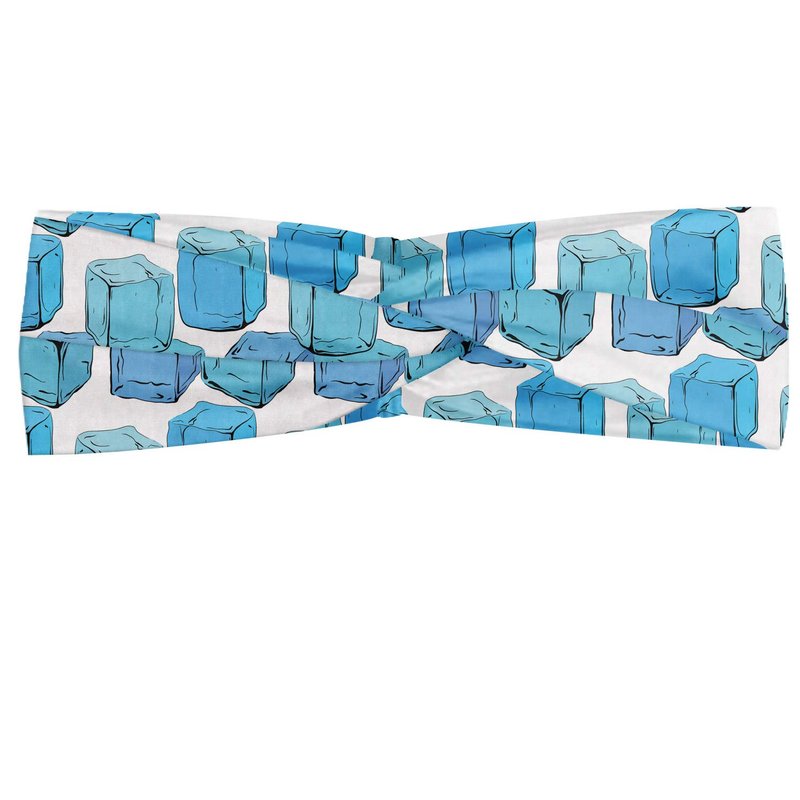 Lunarable Ice Cube Headband for Women, Hand Drawn Cool Cubes Summer Season Cocktail Ingredient Pattern in Blue Shades, Elastic Comfy Hair Accessory Knotted Head Wrap Everyday Use, XS-S, Multicolor