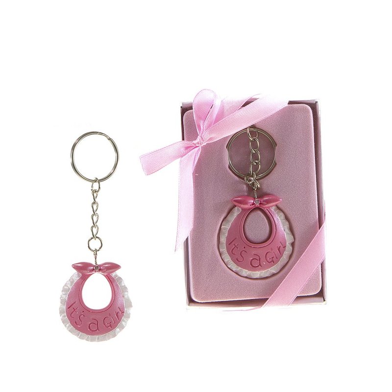 - Baby Bib Key Chain Favors - Pink, Set of 12