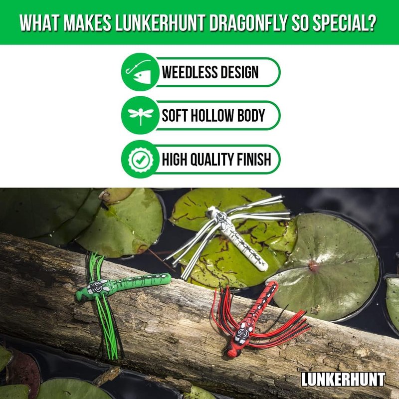 - ✅ INCREASE HOOK-UP RATE with one of the most popular techniques of freshwater anglers. LUNKERHUNT Dragonfly features high quality components and a weedless design. Look no further. Get your LUNKERHUNT DragonFly Fishing Lure today!
