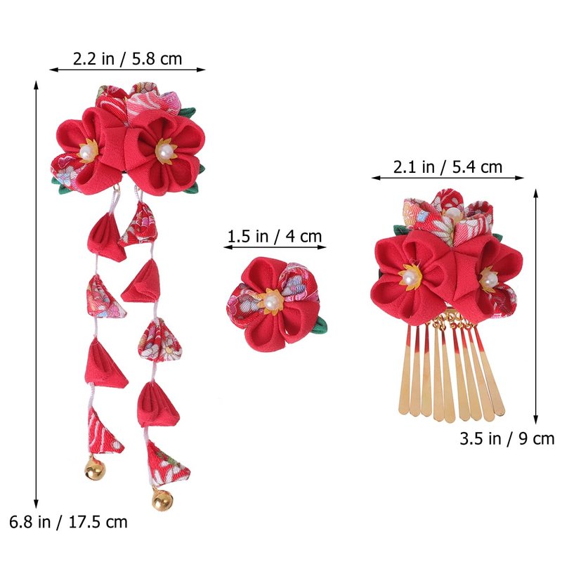 Lurrose 3pcs Japanese Kimono Flower Hair Clips Tassel Hair Hairpins Japanese Style Traditional Kimono Hair Barrettes Hair Accessories for Women (Red)