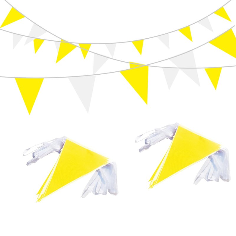 LUSEOAN 100 Ft Solid Yellow and White Pennant Banners Flags String Hanging Triangle Bunting Flags