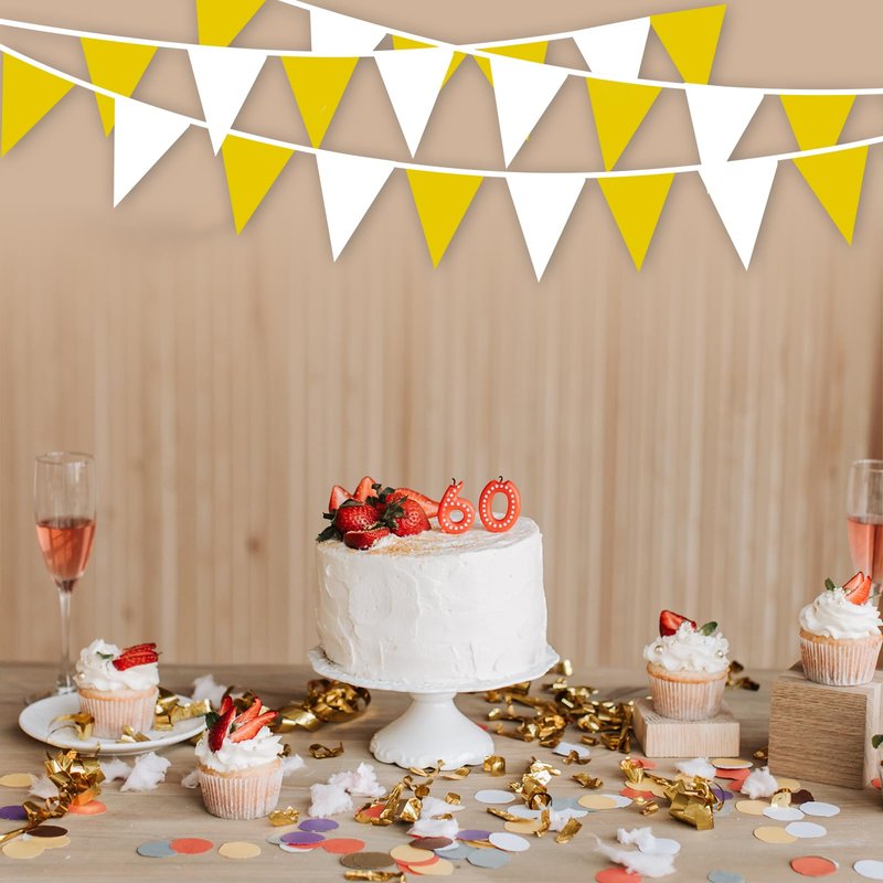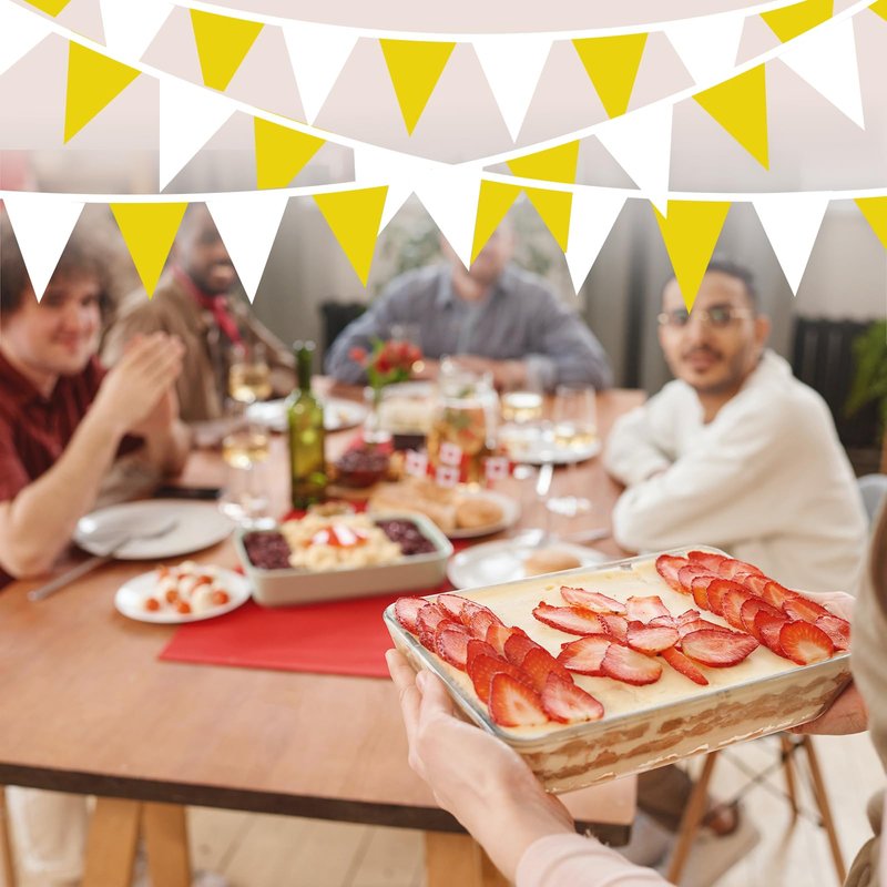 LUSEOAN 100Ft Yellow and White Pennant Banner Flags String Fabric Triangle Bunting Flag,Party Decorations for Wedding,Kids Birthday,Home Outdoor Garden Hanging Festivals Decoration,60 Pcs