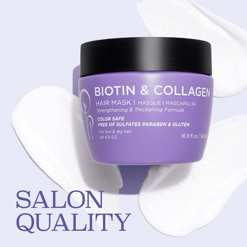 - After cleansing with Biotin & Collagen shampoo, apply generously to damp hair and leave on for up to 5 minutes. Rinse thoroughly. For best results, use weekly