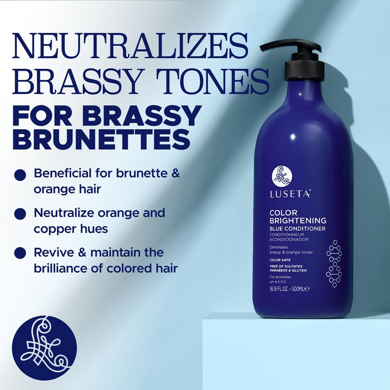 Luseta Hair Care Routine Color Brightening Blue Conditioner for Brunettes and Brassy Orange Tones, 33.8oz, Sulfate Free