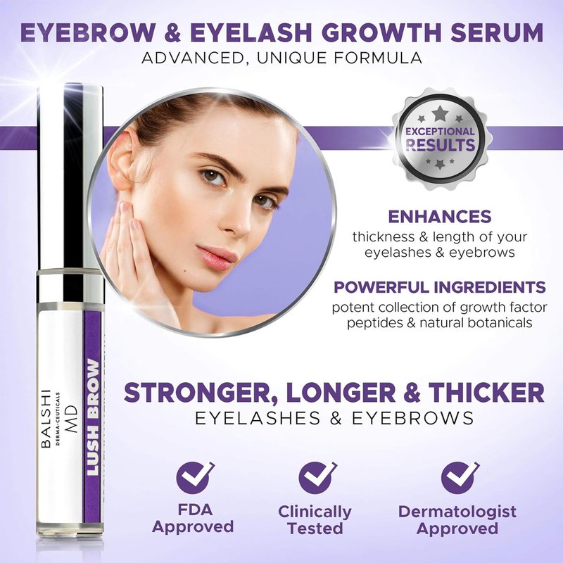 INTENDED USE- Apply directly onto eyebrows with foam wand applicator twice daily. Use enough to dampen eyebrows and gently massage with fingertips. Results may occur within two months with twice daily usage. For some users, it may take as long as 4 months to see results. Thinning and spotty eyebrows are now a thing of the past thanks to Dr. Balshi's revolutionary Lush Brow. This non-irritating, topical hair growth serum was not tested on animals. It dries clear and is fragrance-free. It simultaneously stimulates hair growth while hindering hair loss.