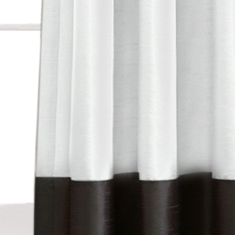 - Top three quarters of the curtain are white and the bottom quarter features a bold, contrasting black.