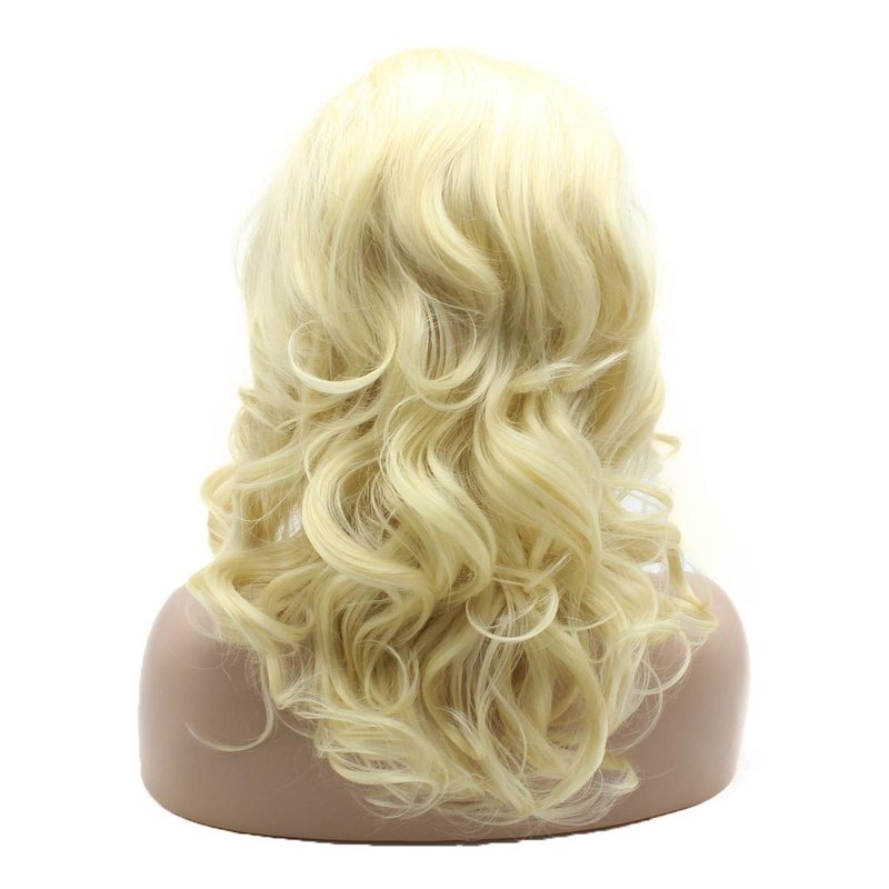 Lushy Medium length Wavy Light Blonde Wig Full Density Half Hand Tied Heat Friendly Synthetic Lace Front Wig