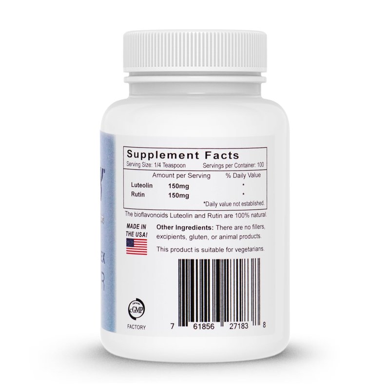 - 𝗖𝗹𝗲𝗮𝗻 𝗧𝗮𝘀𝘁𝗲 𝗣𝘂𝗿𝗲 𝗣𝗼𝘄𝗱𝗲𝗿 - Our tasteless powdered supplements are a patented blend of natural ingredients that are easy to mix. You may still enjoy the original taste of your food or drinks even when adding our luteolin complex powder. It is gluten free, no fillers, excipients, or animal products and is suitable for vegetarians.