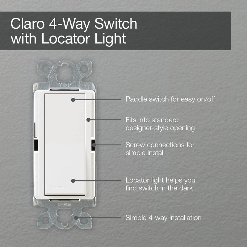 Lutron Claro 15 Amp 4-Way Rocker Switch with Locator Light, CA-4PSNL-WH, White