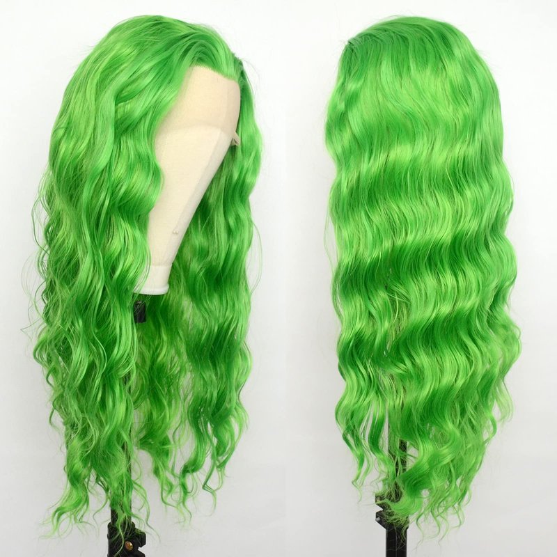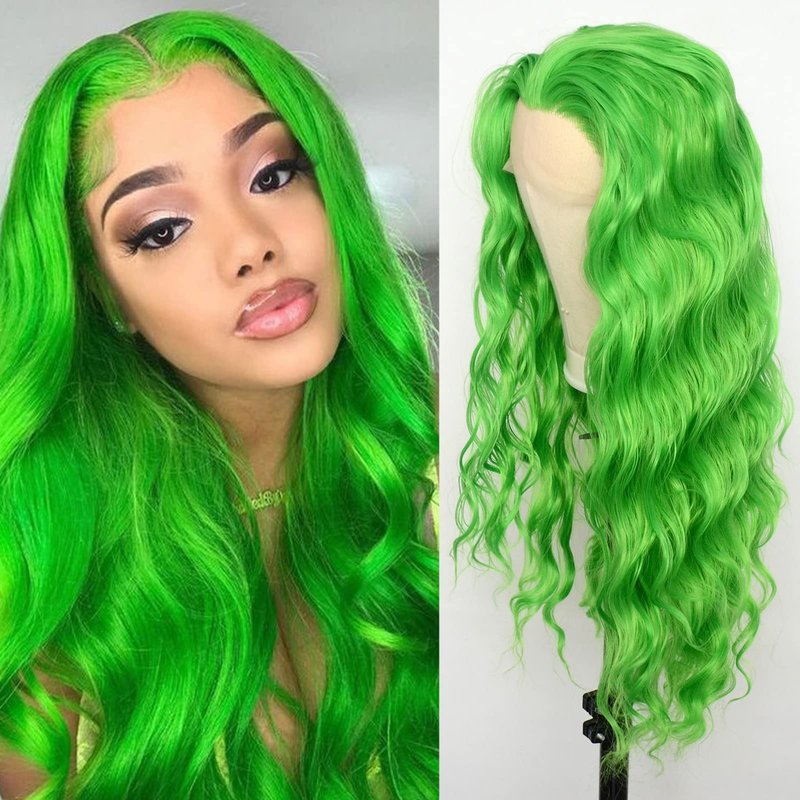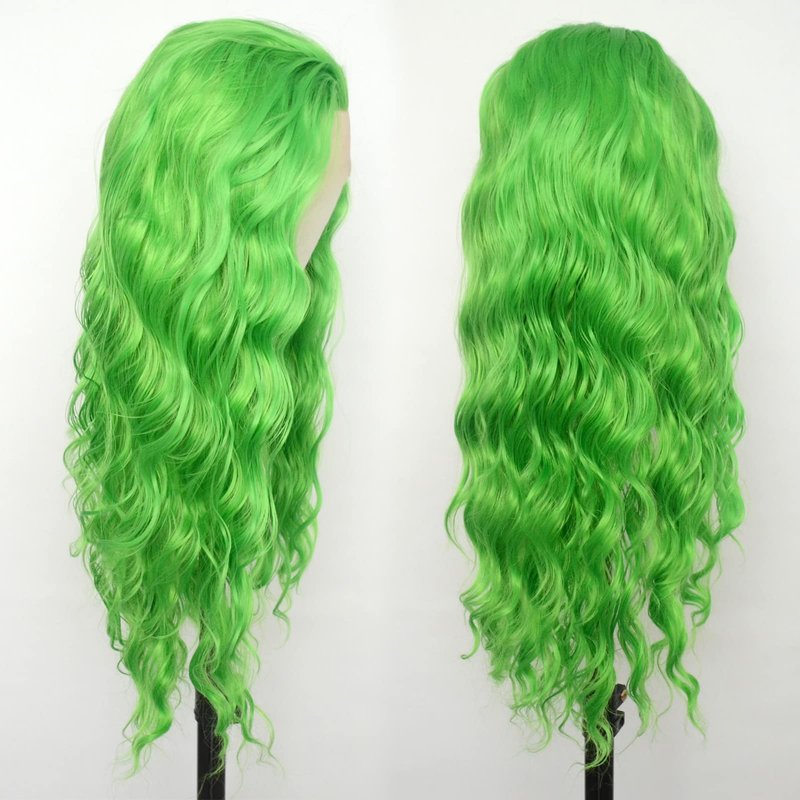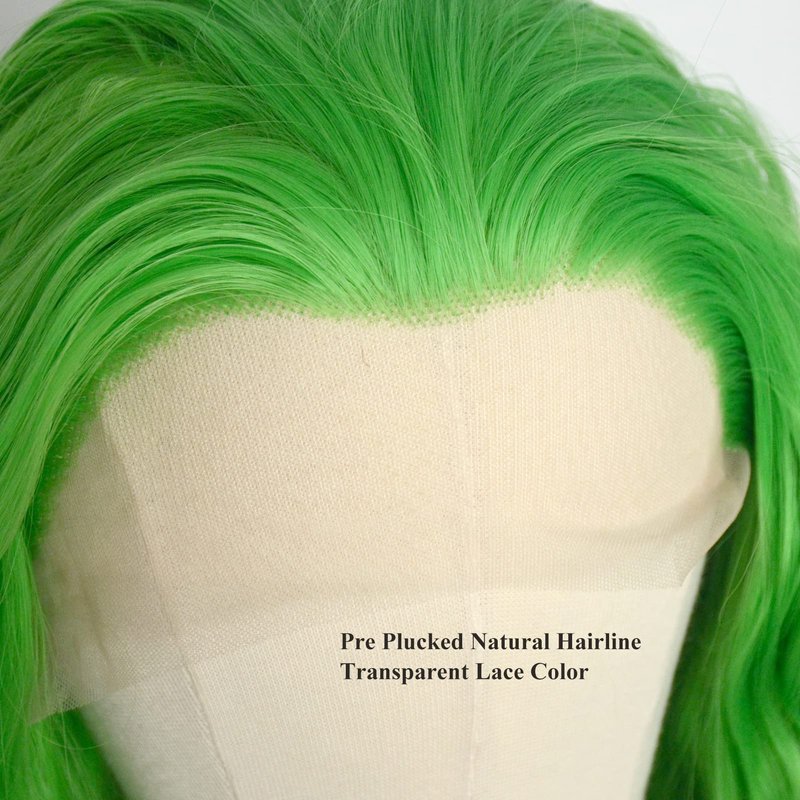 Luwigs Green Lace Front Wigs Curly Wavy Synthetic Heat Resistant Fiber Wigs for Women Lime Green Loose Wave Per Plucked Natural Hairline (22 Inch, Green,Curly)