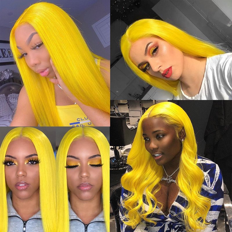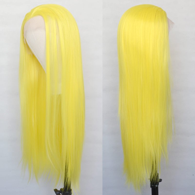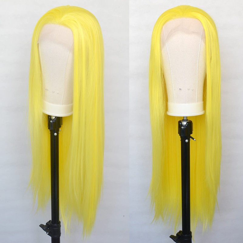 Luwigs Yellow Synthetic Lace Front Wigs Silky Straight Lace Wigs T-part for Women Replacement Wigs Heat Resistant for Cosplay Daily Wear Natural Looking 22inch