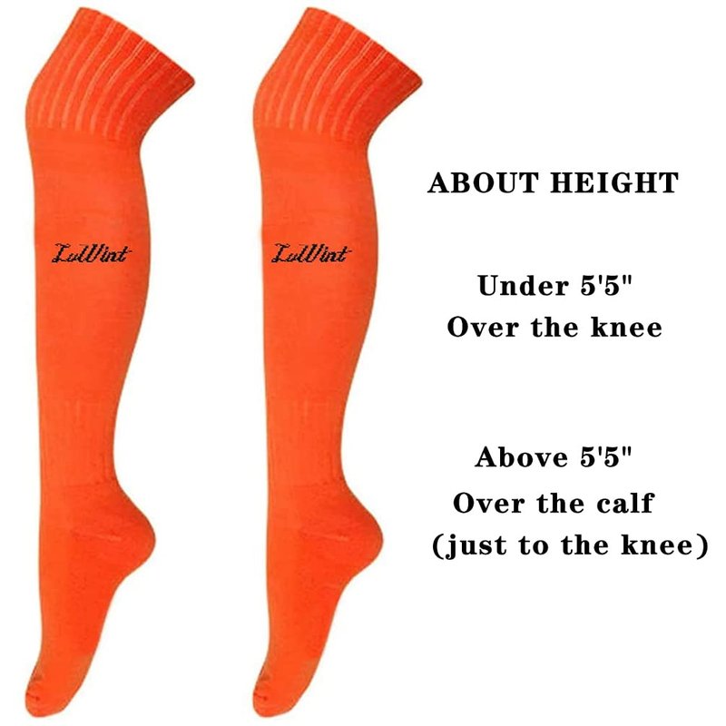 - Long soccer socks. Knee high football socks for adult under 5'5", Over the calf for the taller