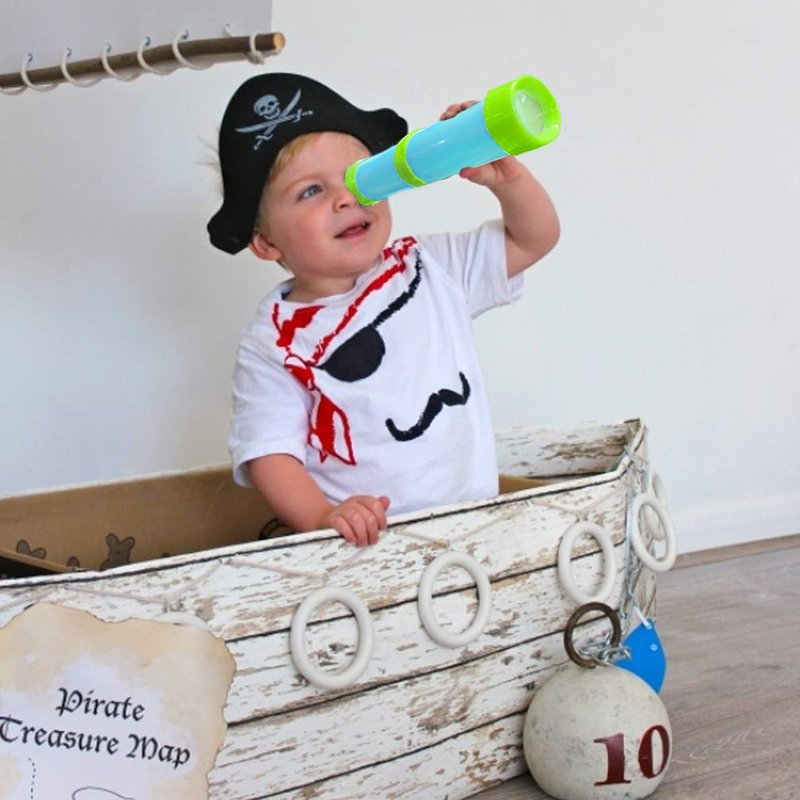 - Ideal Gift: Funny pirate monocular telescope, color box package, includes wrist strap keep telescope not falling (Random delivery); Fits for aged 3-6 yrs old