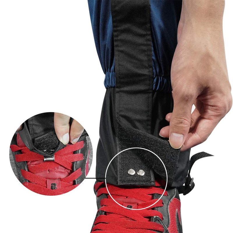 - ADJUSTABLE - Top adjustable drawstring helps gaiters hug your legs more firmly to avoide slipping off. The middle elastics prevent the shoes gaiters from jumping up