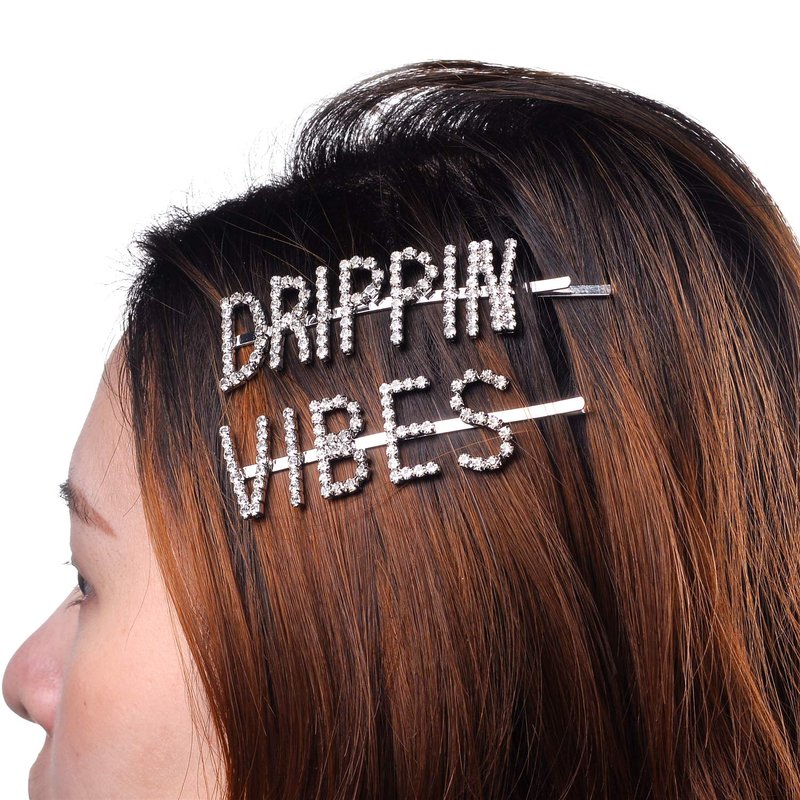 • IN STYLE— Our latest statement piece features this set of 3 fashion hair pins with words that includes GLAM, VIBES, and DRIPPIN with clear crystal rhinestones and in silver tone finish perfect to match your casual or everyday outfit