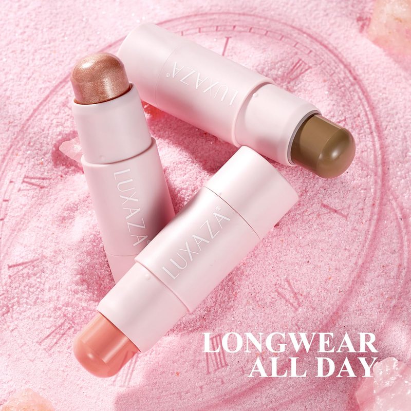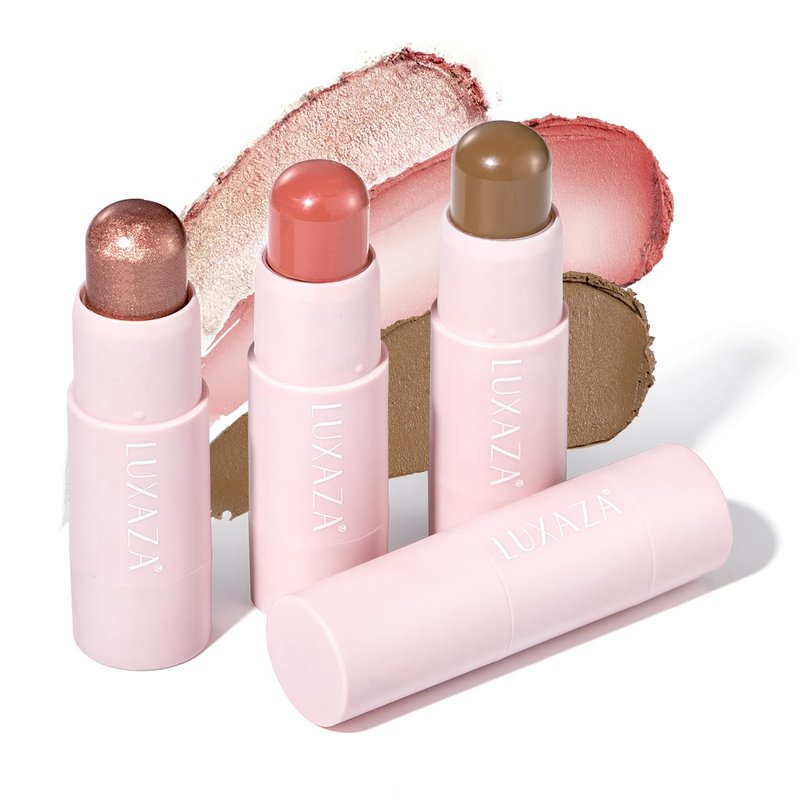 LUXAZA 3PCS Cream Blush Contour Highlighter Bronzer Stick Makeup Set for Girls and Women #HCB5 Tanned