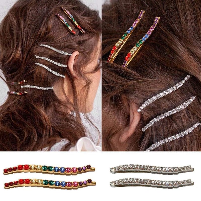 - Rhinestones and crystal hair bobby pin for women and girls; and hair clips with shiny rhinestones, beautiful and cute, with alloy hair clips on the bottom for easy and stable wear. Great for everyday collocation.