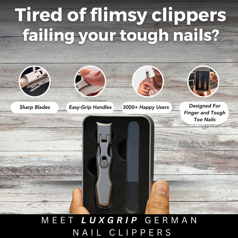 LUXGRIP Nail Clipper for Thick Nails. Nail Clipper for Thick, Ingrown Nails. German Nail Clipper. Wide Open Toenail Clippers for Seniors Thick Nails. No Splash Nail Clippers (Gray)