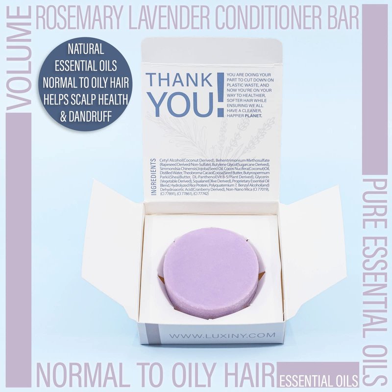 Turn up the Volume. Luxiny's natural Rosemary Lavender Volumizing Conditioner Bar will make your hair feel full and beautiful, adding that extra volume you love. Great for travel (TSA COMPLIANT) and will help you reduce plastic bottle waste. Luxiny's conditioner bar will leave your hair soft and manageable and may also be used as a leave-in conditioner or shave bar.
