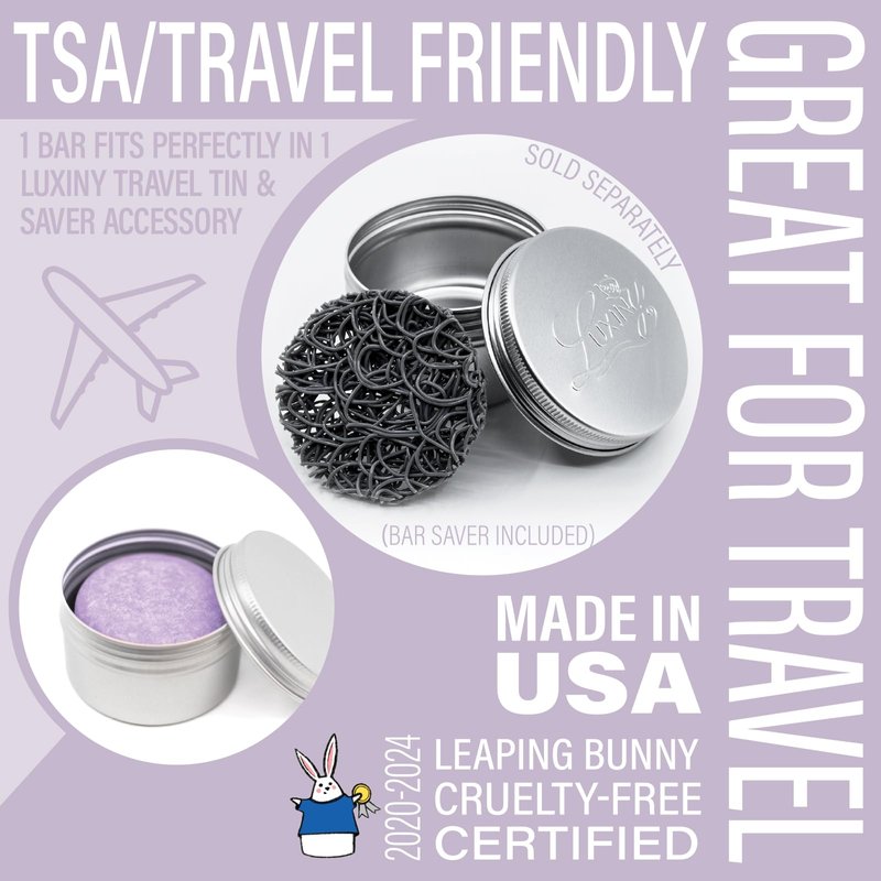 - TSA/TRAVEL FRIENDLY. Because Luxiny's shampoo bars are solid, they can easily fit into your overnight bag alongside your other travel-sized toiletries. These leak-free solid shampoo bars are light enough to carry in your backpack while hiking or camping and can be tossed into your beach bag or purse for an after-swim shower.
