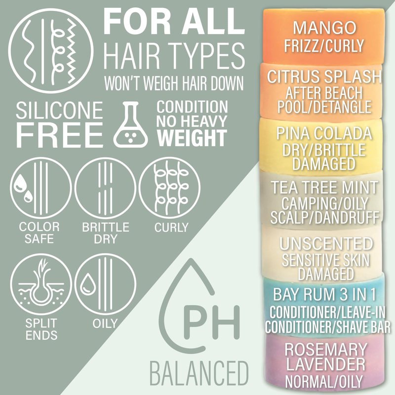 - SAFE FOR COLOR-TREATED HAIR. These natural shampoo and conditioner bars are safe for color-treated hair. Use the hair shampoo bar to rinse off the color-dulling buildup from styling products. Use the hair conditioning bar as a rinse-away or leave-in conditioner for curly, dry, damaged, or frizzy hair. The conditioner bar also makes for a great shave bar.