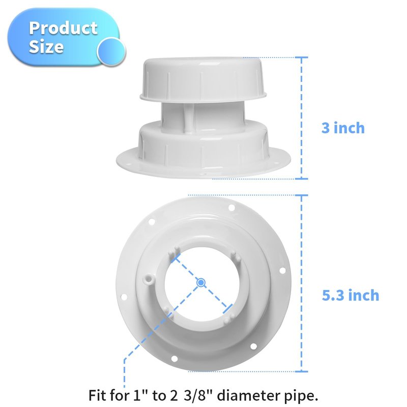 Plumbing Vent Caps Kit-Used it for placement on the top of your RV, trailer or motorhome when the sewer cap is broken or old. It helps to pull out waste gas and provides fresh air in your motorhome,camper.