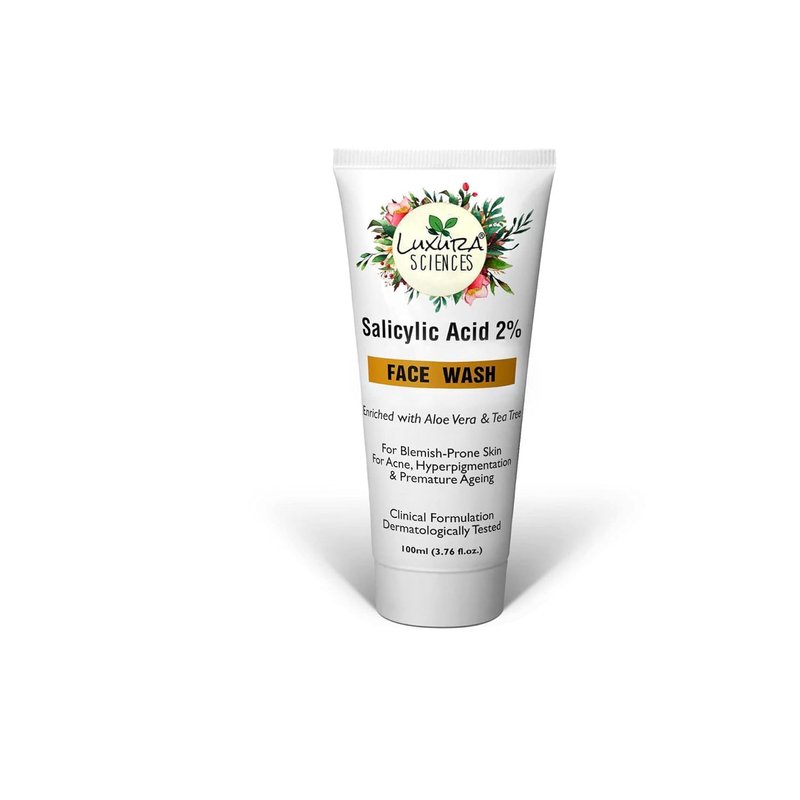Luxura Sciences 2% Salicylic Acid Anti Acne Gel Face Wash | Fights Acne & Unclog Pores | Controls Excess Oil & Sebum | Tea Tree Infused Facial Cleanser | 3.38 Fl Oz/100ml